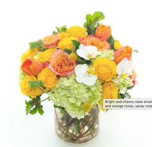 Enjoy these beautiful yellow roses hydrangeas and orchids and in the clean glass vases with love touch and arranging by our designer.